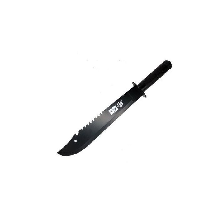 Facão Sobrevivência Selva Com Porta Objetos Facão militar com porta objetos, linda peça confeccionada em aço carbono e com excelente empunhadura. - Lamina super amolada - Preta feita em aço. - Cabo feito em aço. - comprimento total: 48cm. - Comprimento cabo: 13 cm. - Comprimento da Lâmina: 35 cm - Largura: 6 cm. - Espessura: 3 milímetros. - Bainha em poliéster de alta resistência - cabo com porta objetos