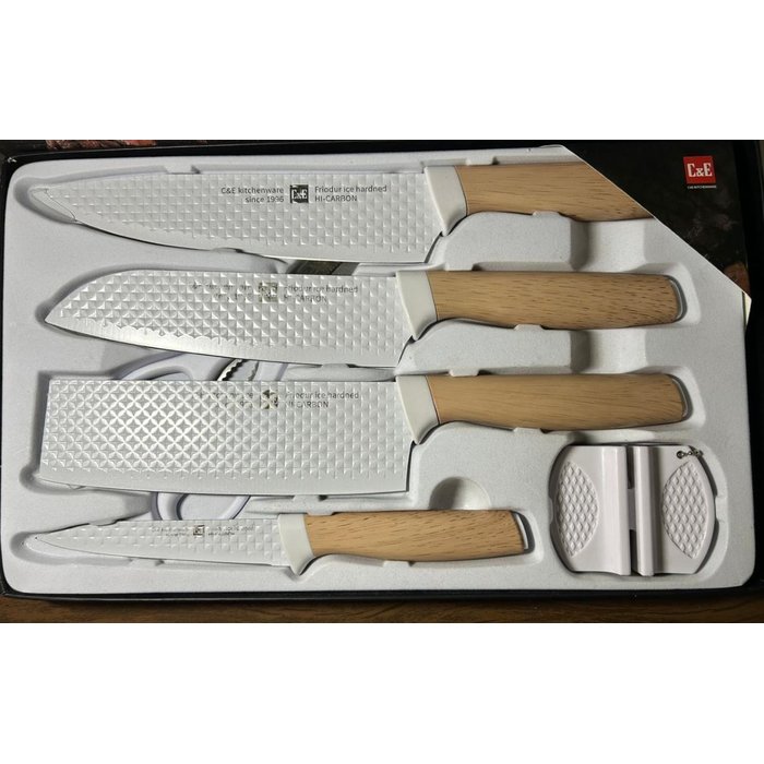 Facas Premium com Corte a Laser 6 Peça Luxo com Afiador:branco