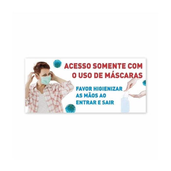 Faixa "Acesso somente com uso de máscaras, favor higienizar as mãos ao entrar e sair" para alertar a prevenção contra o Novo Coronavírus (Covid-19).