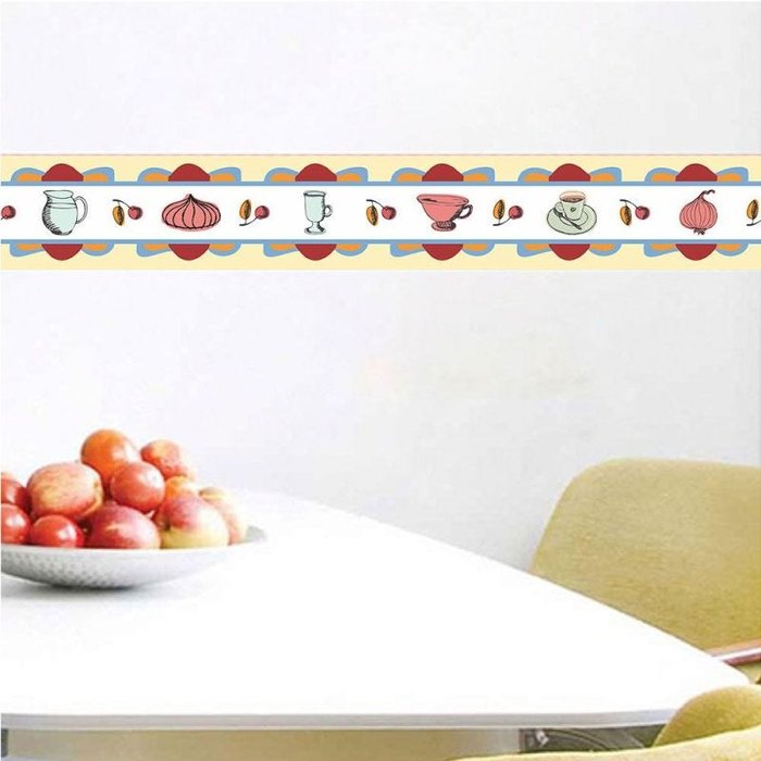 Faixa de Parede Taça e Jarra Faixas de Parede feitas especialmente para você decorar sua cozinha rápido e fácil. As Faixas de Parede são perfeitas para decorar e mudar seu ambiente, além de deixar o ambiente lindo. São fabricados com vinil importado, de extrema qualidade e impressão digital U.V. deixando assim as imagens em alta resolução. O material é de alta durabilidade e podem ser aplicados em portas de madeira, portas de vidro, paredes ou onde sua imaginação desejar. Com apenas uma Faixa de Parede você pode transformar totalmente o ambiente, deixando o quarto, quarto do bebê, cozinha, sala, banheiro e qualquer outro ambiente moderno. Instalação: .Pode ser aplicado facilmente por qualquer pessoa. Junto com o produto enviamos um manual de aplicação. Medidas do Produto: Faixa de 15 cm de altura x 100 cm de comprimento.