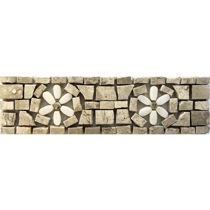 Faixa em Mosaico Fiori Di Campo - 10x30cm Bege e Branco