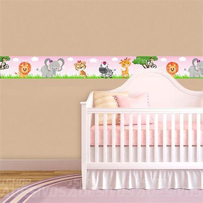 Faixa Infantil Safari Rosa Faixas de Parede feitas especialmente para você mamãe que quer deixar o quarto da sua princesinha ainda mais colorido e alegre. Mude a decoração de forma fácil e rápida. As Faixas de Parede são perfeitas para decorar e mudar seu ambiente, além de deixar o ambiente lindo. São fabricados com vinil importado, de extrema qualidade e impressão digital U.V. deixando assim as imagens em alta resolução. O material é de alta durabilidade e podem ser aplicados em portas de madeira, portas de vidro, paredes ou onde sua imaginação desejar. Com apenas uma Faixa de Parede você pode transformar totalmente o ambiente, deixando o quarto, quarto do bebê, cozinha, sala, banheiro e qualquer outro ambiente moderno. Instalação: .Pode ser aplicado facilmente por qualquer pessoa. Junto com o produto enviamos um manual de aplicação. Medidas do Produto: Faixa de 15 cm de altura x 100 cm de comprimento.
