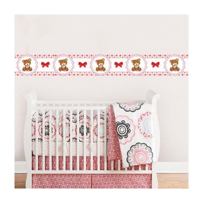 Faixa Infantil Ursinha Vermelha Faixas de Parede feitas especialmente para você mamãe que quer deixar o quarto da sua filha ainda mais colorido e alegre. Mude a decoração de forma fácil e rápida. As Faixas de Parede são perfeitas para decorar e mudar seu ambiente, além de deixar o ambiente lindo. São fabricados com vinil importado, de extrema qualidade e impressão digital U.V. deixando assim as imagens em alta resolução. O material é de alta durabilidade e podem ser aplicados em portas de madeira, portas de vidro, paredes ou onde sua imaginação desejar. Com apenas uma Faixa de Parede você pode transformar totalmente o ambiente, deixando o quarto, quarto do bebê, cozinha, sala, banheiro e qualquer outro ambiente moderno. Instalação: .Pode ser aplicado facilmente por qualquer pessoa. Junto com o produto enviamos um manual de aplicação. Medidas do Produto: Faixa de 15 cm de altura x 100 cm de comprimento.