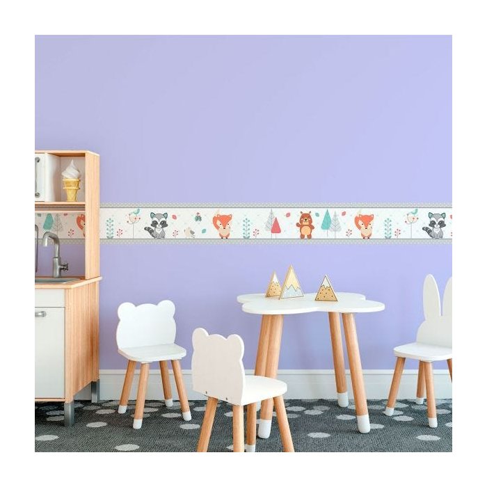 Faixa Infantil Urso Raposinha Guaxinim Faixas de Parede feitas especialmente para você mamãe que quer deixar o quarto da sua filha ainda mais colorido e alegre. Mude a decoração de forma fácil e rápida. As Faixas de Parede são perfeitas para decorar e mudar seu ambiente, além de deixar o ambiente lindo. São fabricados com vinil importado, de extrema qualidade e impressão digital U.V. deixando assim as imagens em alta resolução. O material é de alta durabilidade e podem ser aplicados em portas de madeira, portas de vidro, paredes ou onde sua imaginação desejar. Com apenas uma Faixa de Parede você pode transformar totalmente o ambiente, deixando o quarto, quarto do bebê, cozinha, sala, banheiro e qualquer outro ambiente moderno. Instalação: .Pode ser aplicado facilmente por qualquer pessoa. Junto com o produto enviamos um manual de aplicação. Medidas do Produto: Faixa de 15 cm de altura x 100 cm de comprimento.
