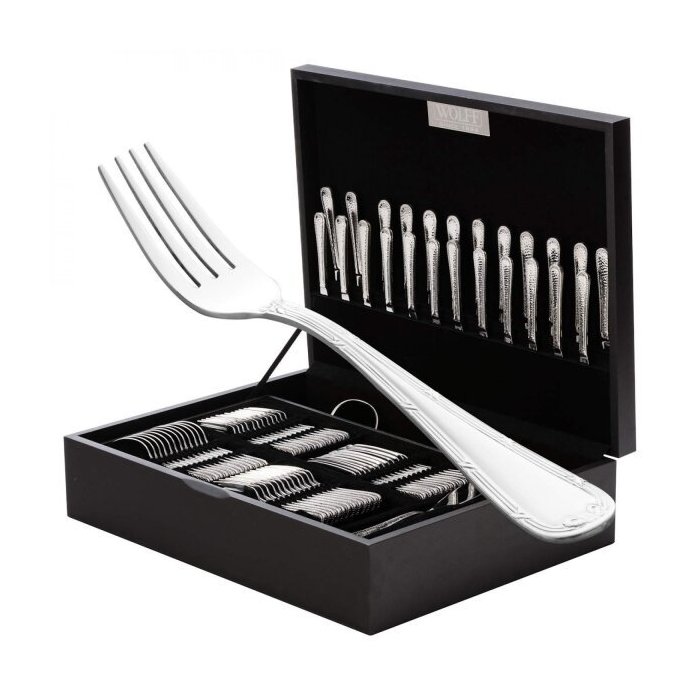 Faqueiro 130 Peças de Prata com Estojo de Madeira Croisé Wolff Rojemac