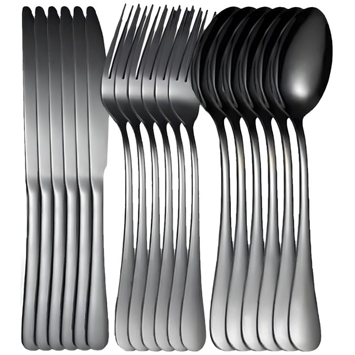 Faqueiro 18 Peças Jogo de Talheres Utensílios para Cozinha em Aço Inox Preto