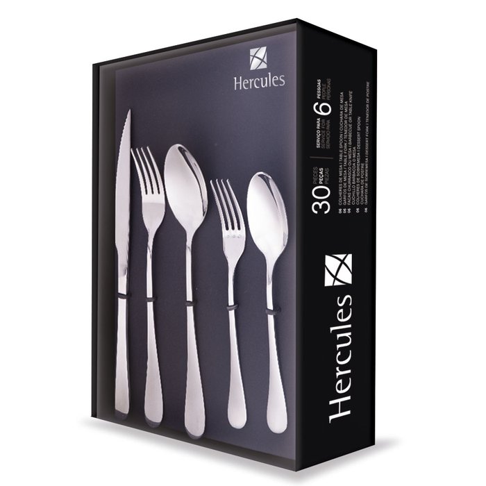 Faqueiro 30 Peças de Aço Inox com Estojo de Papelão Hercules Eclipse