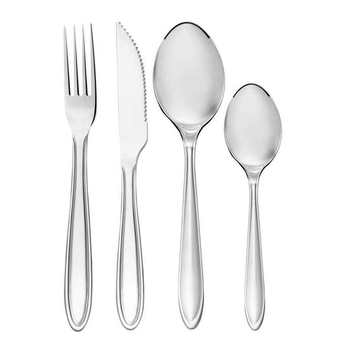 Material: Aço Inox de Alta Qualidade Conteúdo: 4 Facas, 4 Garfos, 4 Colheres de Jantar, 4 Colheres de Sobremesa (16 peças) Garfo de Mesa: 19 x 2,5 cm