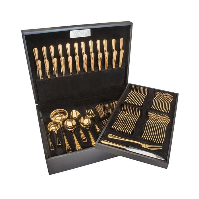 Faqueiro com 130 Peças de Aço Inox Avalon - Wolff - Dourado