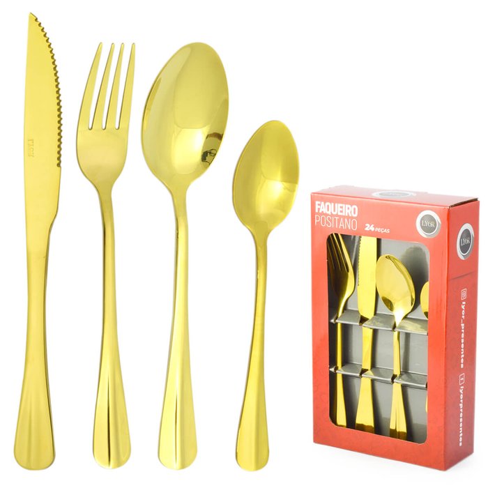 Faqueiro Conjunto Jogo Talheres Inox 24 Peças Luxo:DOURADO dourado