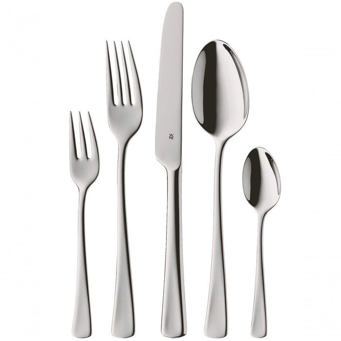 A característica dos talheres Denver é sua forma cônica e a extremidade larga do cabo. Isso o torna muito presente principalmente em relação à sua superfície polida. As facas monobloco de alta qualidade têm uma lâmina particularmente longa e o comprimento dos talheres individuais combina particularmente bem com pratos grandes. O conjunto é ideal para impressionar seus convidados!Ficha técnica:- Código: 4080011462- Marca: WMF- Modelo: DenverConteúdo da Embalagem:6 Facas de mesa6 Garfos de mesa6 Colheres de mesa6 Colheres de chá6 Garfos de bolos-Especificações do produto:Aço Cromargan 18/10As facas de mesa são sólidas, feitas de aço, forjadas em uma única peça e endurecidas como um todoAcabamento polidoNão enferrujaLavável na máquina de lavar louçasDimensões equilibradasHigiênicoResistente a ácidos e indestrutível- Material: Aço inox- Peso: 1,93kg- Dimensões: 6cm x 27cm x 43,5cm (AxLxP)- Garantia: 90 dias em loja ou SAC Spicy