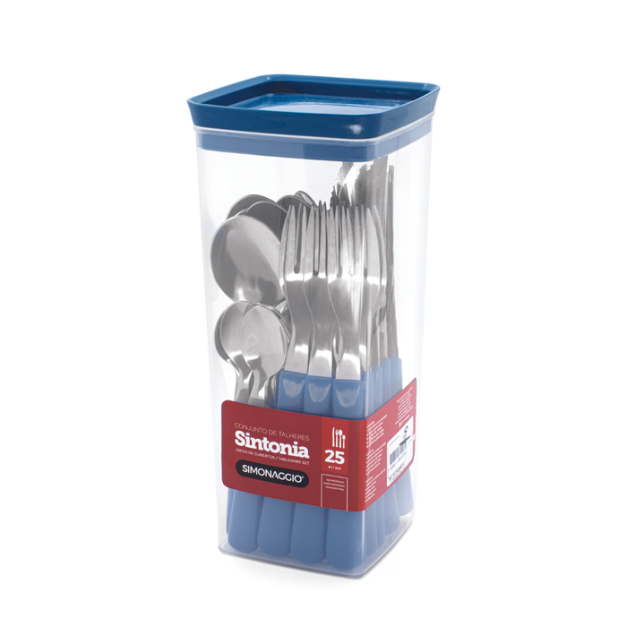 Faqueiro em Inox Sintonia com 25 Peças Simonaggio Azul Azul