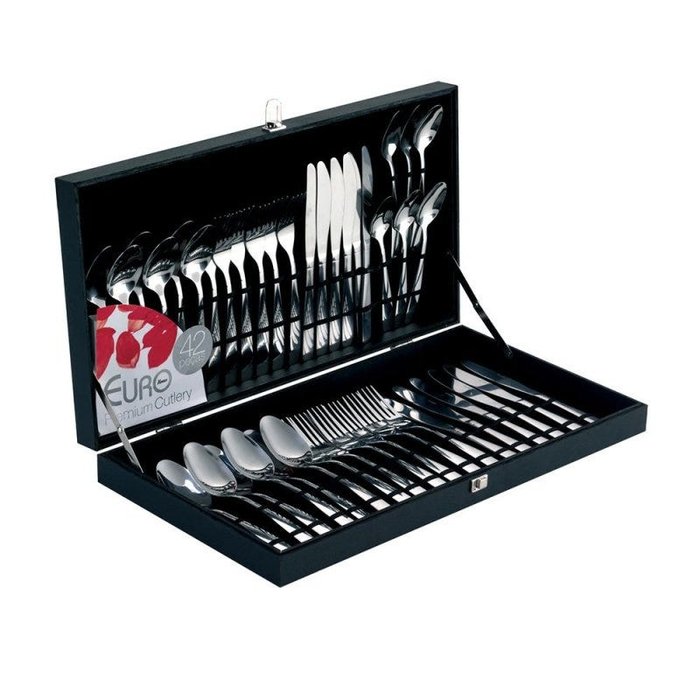 Faqueiro Euro Home Liso Estojo de Madeira com 42 Peças