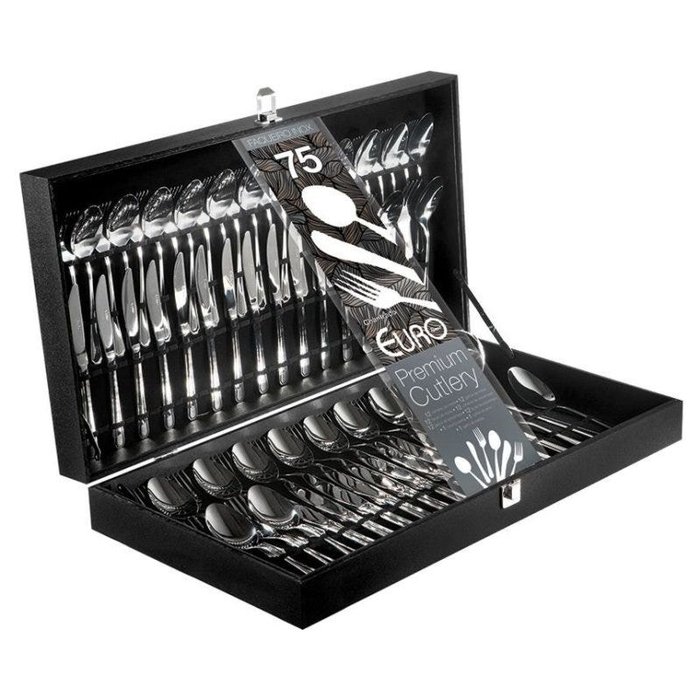 Faqueiro Good Inox 75 Peças com Estojo de Madeira - Euro Home FQM6122