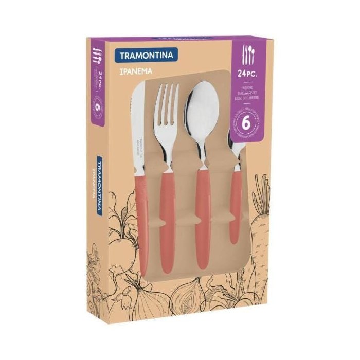 Faqueiro Tramontina Ipanema com Lâminas em Aço Inox e Cabos de Polipropileno Goiaba 24 Peças Descrição: