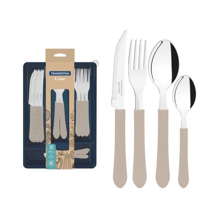Faqueiro Tramontina Leme com Lâminas em Aço Inox e Cabos de Polipropileno Cinza com Gaveteiro 25 peças