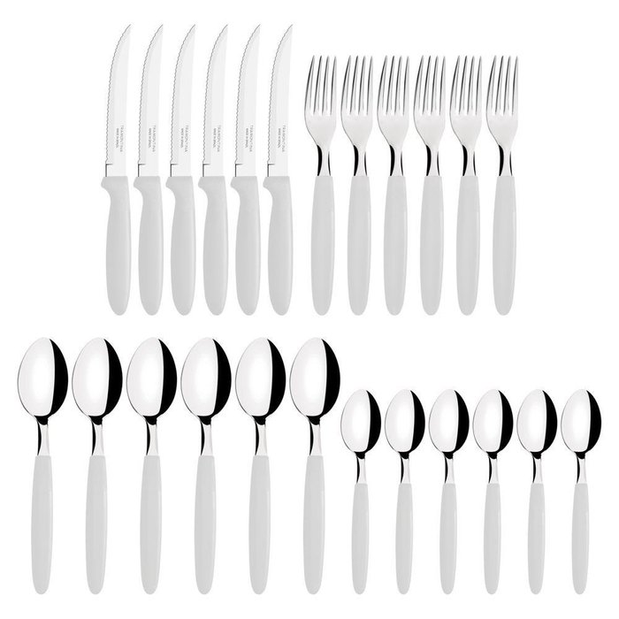Faqueiro Tramontina Laminas em Aço Inox e Cabos de Polipropileno Branco com Pote Plastico 24 Peças Única