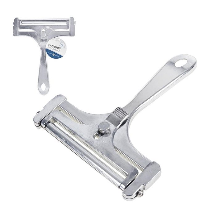 Fatiador De Queijo Aço Inox Espátula Plaina Cortador Queijo<br><br> Utensílio em aço inox, tem muito mais durabilidade.<br> Cabo com furo passante para pendurar o utensílio em barra.<br> Produto com design moderno e pertencente a uma completa linha de utensílios garantindo beleza e harmonia na cozinha.<br> Utensílio de alta qualidade e fácil manuseio.<br> Pode ir à máquina de lavar louças.<br> Indicado para cortar qualquer tipo de massa para pastel, lasanha, fogaça e etc.<br><br> Composição: Aço Inox<br> Conteúdo da Embalagem:<br> - 1x Espátula para Queijo<br>