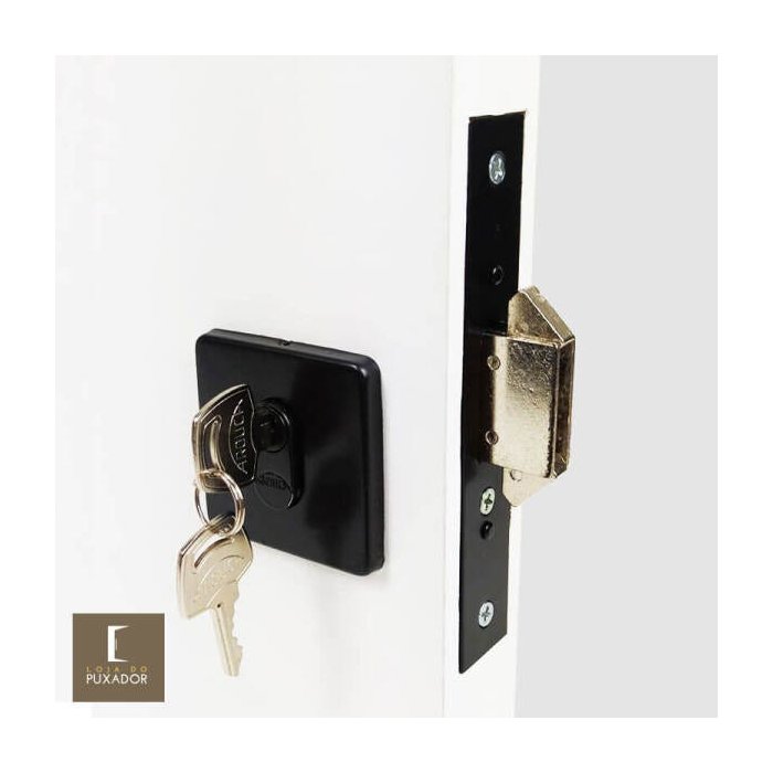 Fechadura AROUCA Trinco Asa de Avião Bico Duplo para Porta de Correr 1006/098 Preto com Roseta Quadrada