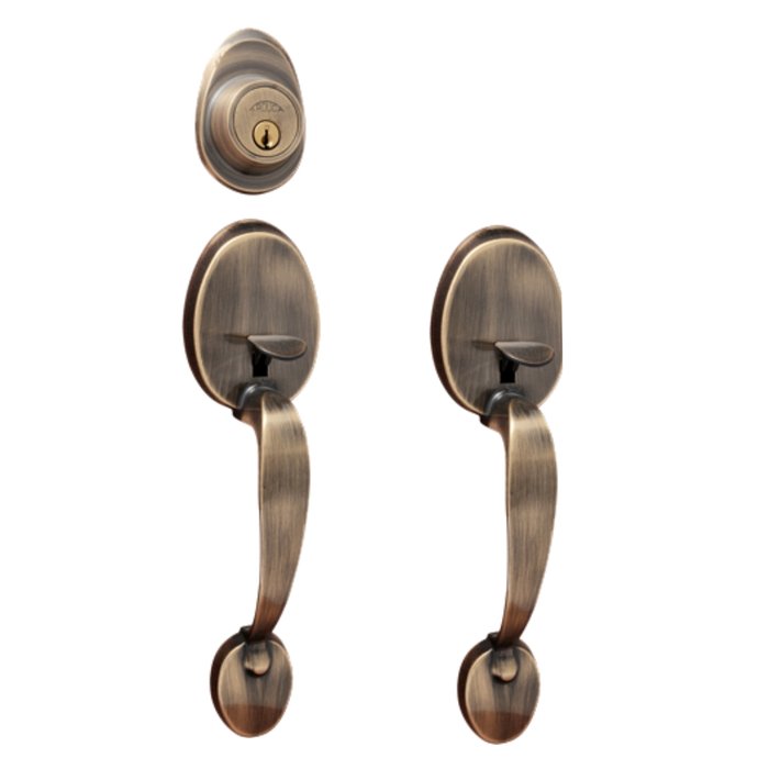 Pode ser usados em portas com espessura entre 30 mm e 45 mmCARACTERÍSTICASDo lado externo apresenta Duas imponentes alças, estilo puxador, onde todos os componentes estão harmoniosamente integrados ao espelho, incluindo o cilindro Arouca embutido para dar maior segurança.Do lado interno o acionamento é feito por maçaneta bola e tranqueta.Especificações:- Fabricante: Arouca- Distância de Broca: 70mm- Para portas entre 35mm até 45mm de espessura- acompanha 2 chaves- Acabamentos em Zamak Antique- Nivel de Corrosão: 2- Segurança: Alta- Trafego: Médio