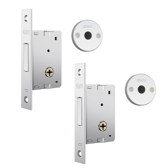 Fechadura de Segurança Trava Auxiliar 1001 Tetra Chave Par Roseta Redonda Cromada 30mm Stam Cromado