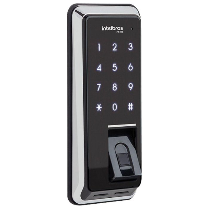 A FR 220 é uma fechadura digital de sobrepor com biometria, que também possui como método de identificação o cadastro de até 4 senhas numéricas em teclado touch screen luminoso de 12 teclas. Sua instalação é simples e sua alimentação é feita por 4 pilhas AA.