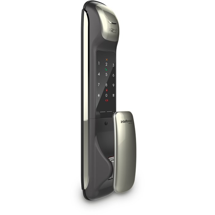 A fechadura digital FR 630 da Intelbras oferece múltiplos métodos de acesso, incluindo senha, cartão RFID 13,56 MHz, biometria digital e chave mecânica de emergência. Com design moderno e acabamento em alumínio escovado, é indicada para ambientes residenciais e comerciais que buscam segurança e praticidade. O teclado touch sensível ao toque possui iluminação para facilitar o uso em ambientes escuros, e a função anti-travamento bloqueia o acesso após tentativas incorretas para aumentar a segurança.
