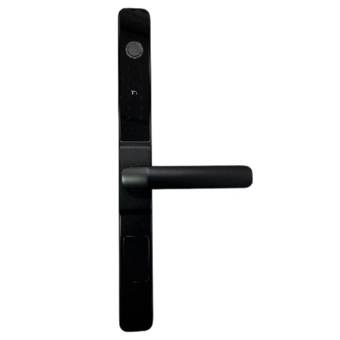 Fechadura Digital com conectividade Wi-Fi, para portas e janelas de esquadrias de aluminio, máquina com incrível profundidade de 4cm, abertura por aplicativo Tuya Smart instalado no celular, biometria com capacidade de até 100 usuários, senha numérica de 6 a 10 dígitos com capacidade de até 100 usuários, cartão de aproximação com capacidade de até 100 usuários (acompanham 2 cartões), chave física (acompanham 2 chaves), exclusivo fecho com bico de papagaio, apropriado para utilização em portas de abrir ou de correr, proteção IP65 contra poeira e respingos
