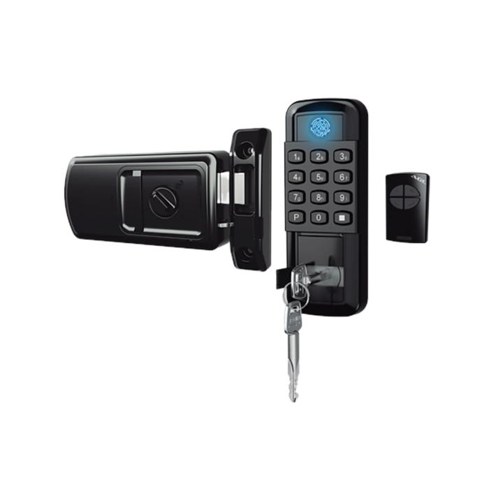 Abertura por biométria, controle remoto na frequência 433mhz, senha, ou chave mecânica;