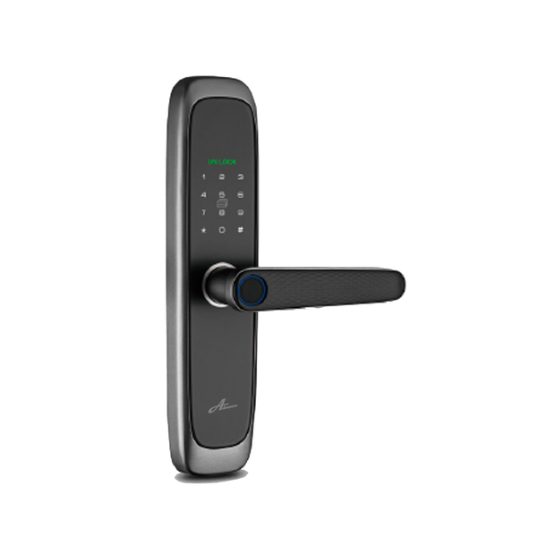 Modelo embutido com alça, versátil para abertura direita ou esquerda.