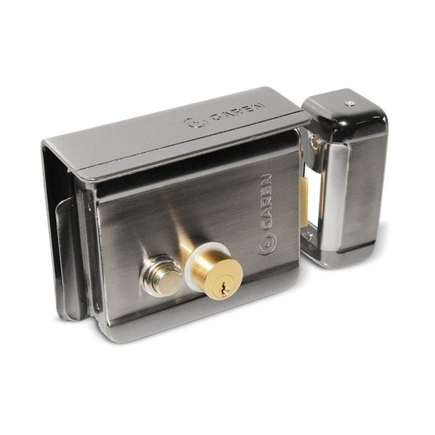 Fechadura elétrica de sobrepor GA049, ideal para uso em portas e portões de madeira, ferro ou alumínio, com acabamento cromado leva design e resistência com máxima praticidade.