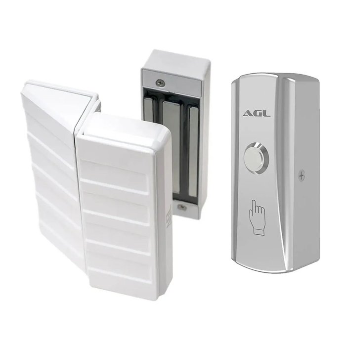 Fechadura Eletroímã Portas Vidro com Botoeira Inox Antifurto AGL Branco Branco