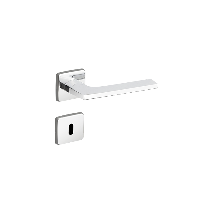 A Fechadura Interna Polara - 55mm - Cromado - Imab é um conjunto de fechadura da linha basic do modelo Polara, ideal para aplicação em ambientes internos, com máquina de 55mm de distância de broca, roseta quadrada e maçaneta tipo alavanca. É ideal para utilização em portas com espessura de 30 a 40mm.