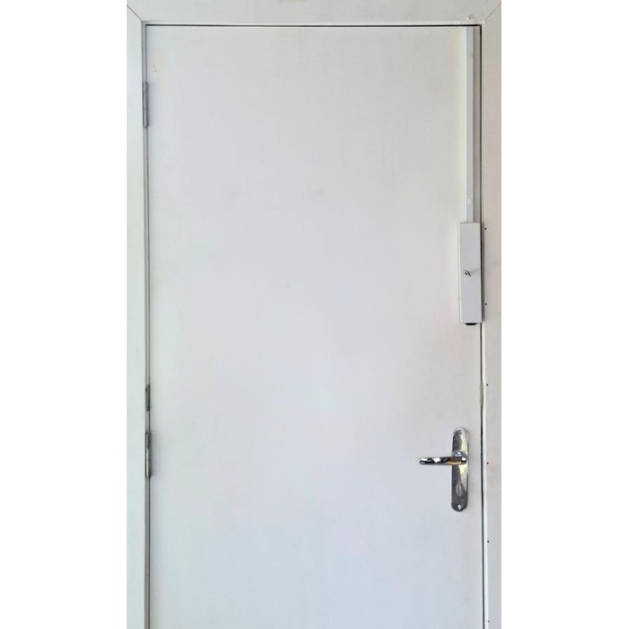 Trava no Piso ou no Teto, chaveia nos dois lados da porta, estrutura de aço, acabamento pintura eletrostática, instalação fácil e rápida no lado interno da porta.