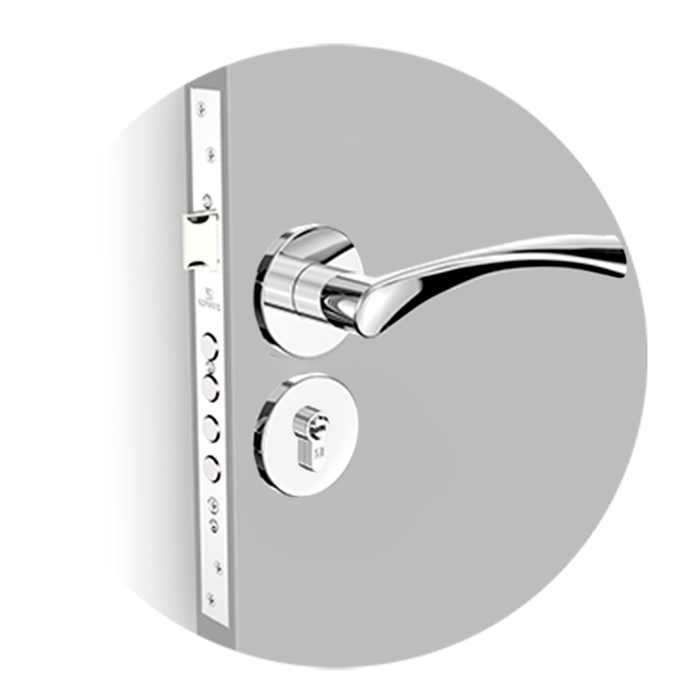 As molas nas rosetas deixam a pega da maçaneta mais firme e pesada, o que confere à fechadura mais força e robustez.