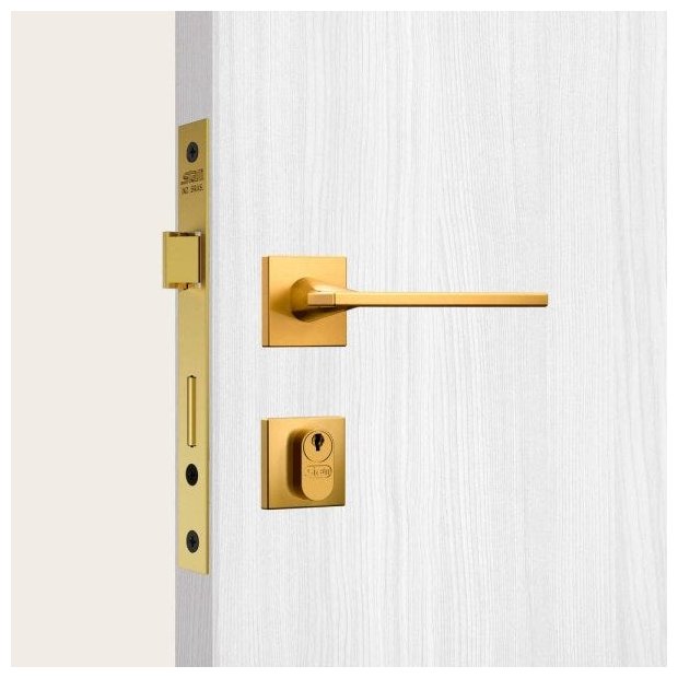 Fechadura Residencial Stam, modelo Classic Antares 3000, com Roseta Quadrada Gold Dourado, distância de broca 40mm, para Porta de Madeira Externa.