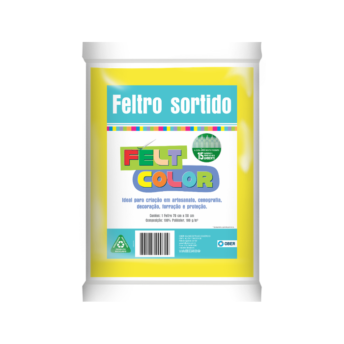 Descrição:Os feltros Feltcolor da Ober são fabricados com tecnologia da mais alta qualidade. A combinação de equipamentos de última geração aliadas a fibras 100% poliéster sem misturas, cria feltros com larguras e bases estabilizadas de excelente qualidade e resistência, nesta combinação nasce feltros com toque macio não alérgicos.Características:Tipo: Feltro LisoComposição: 100% PoliésterGramatura: 180g/m²Conteúdo e Dimensões:01 Feltro medindo 70cm x 50cmInstruções de Conservação:*Processo normal de lavagem com temperatura máxima de 40º C*Não alvejar*Não secar em tambor*Secagem em varal*Não passar a ferro*Não limpar a seco*Limpeza a úmido profissional, processo normalInformações Técnicas:Modelo: FeltcolorMarca: OberAviso:Foto: Imagem Meramente Ilustrativa.Garantia (Fabricante): Contra Defeitos de Fabricação.