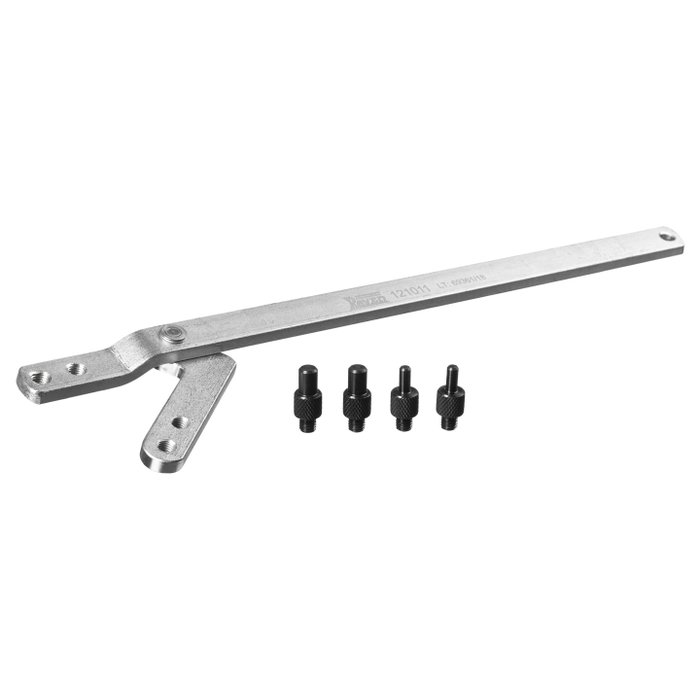 Nome: Ferramenta para imobilizar manualmente a(s) polia(s) da(s) árvore(s) de comando de válvulas de motores. Principais aplicações: VW EA111, 1.8 20V, V6 (Passat), Ford Zetec 16V, Duratec 16V, GM 1.0 a 2.4 8 e 16V (exceto Ecotec), Fiat Fire 8 e 16V, 1.8 8 e 16V, 2.0/2.4 20V, Peugeot/Citroën 1.0/1.4/2.0 8V, 1.0/1.8/2.0 16V e Renault 1.0/1.6/2.0 8V.