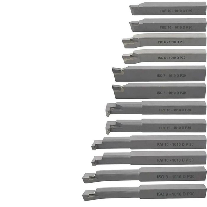 Ferramenta Soldada Interno/Externo 10x10 - Mini Torno 12 PçsO QUE É A FERRAMENTA SOLDADA PARA TORNO As ferramentas Soldadas são ferramentas de corte utilizadas na maioria das vezes em tornos mecânicos. Geralmente fabricadas em aço comum, essas ferramentas possuem diversas normas de fabricação, que garantem a padronização e o formato da ferramenta, como a norma ISO, por exemplo. PARA QUE SERVE A FERRAMENTA SOLDADA PARA TORNO Elas possuem uma gama de tamanhos e formatos, podendo-se sangrar, desbastar, facear, entre outras operações de usinagem. ITENS INCLUSOS NO KIT DE FERRAMENTAS SOLDADAS02 - Suporte ISO 6 1010 D P30 - DESBASTE EXTERNO
