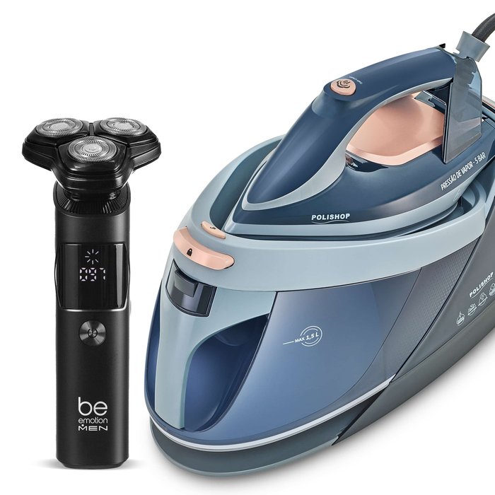 Ferro de Passar Protect & Care Polishop e Barbeador Elétrico Shaver Aqua Pro Be Emotion Men | 220v Azul e Preto