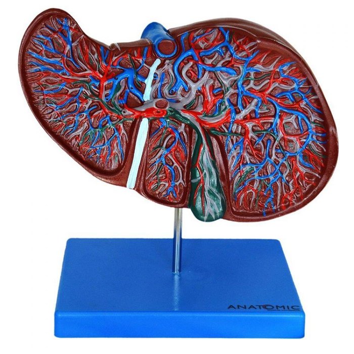 Figado Humano Modelo Luxo Anatomia Modelo de fígado em corte coronal, aumentado 1.5 vezes o tamanho natural, colorido, exibe estrutura interna numerada e classificada. Confeccionado em resina plástica emborrachada. Composto por: Fígado, Vesícula biliar, Veia porta, Veia cava inferior, Artéria hepática, Ducto colédoco, Ligamento redondo. O modelo TZJ-0324-B permite: Visualizar parte externa e interna do fígado, O estudo da estrutura interna do fígado, através do corte sagital, Estudo das regiões específicas do fígado que estão numeradas e classificadas no manual de instruções. Acompanha: Manual do usuário, base.