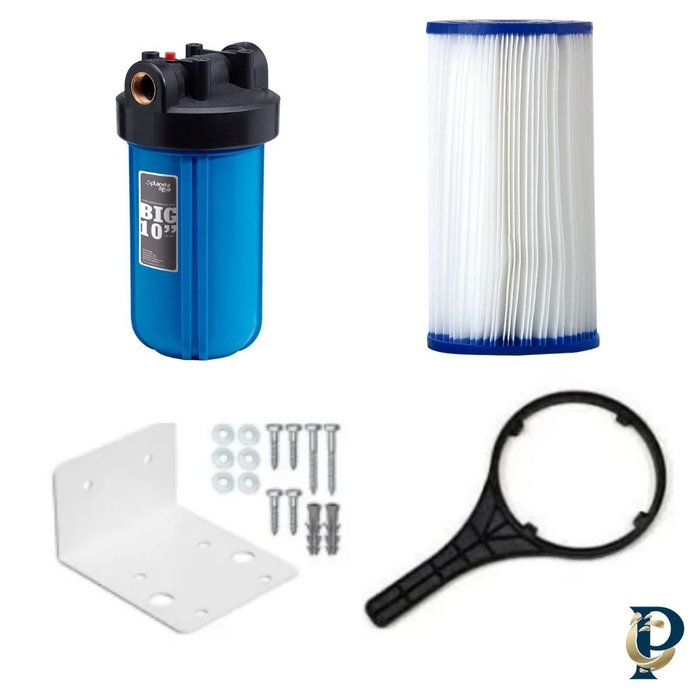 Filtro Big 10" Rosca Metálica 1" - Acompanha Chave, Refil Plissado, Suporte e Parafusos - 6600