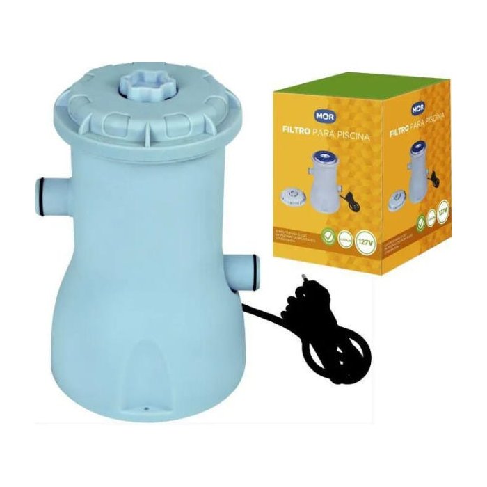 Em tempo de preocupação ambiental, o uso consciente da água é fundamental. O Filtro Piscina Mor possui capacidade de filtragem de 2.200 litros por hora, o que reduz também o gasto de energia, tornando mais rápido, eficaz e econômico o tratamento da água da sua piscina. Esse Filtro é recomendado somente para uso em piscinas desmontáveis. Para um bom funcionamento, o seu refil deve ser trocado a cada três meses quando usado constantemente. Com 110 v, acompanha duas mangueiras de 1,5 metros.