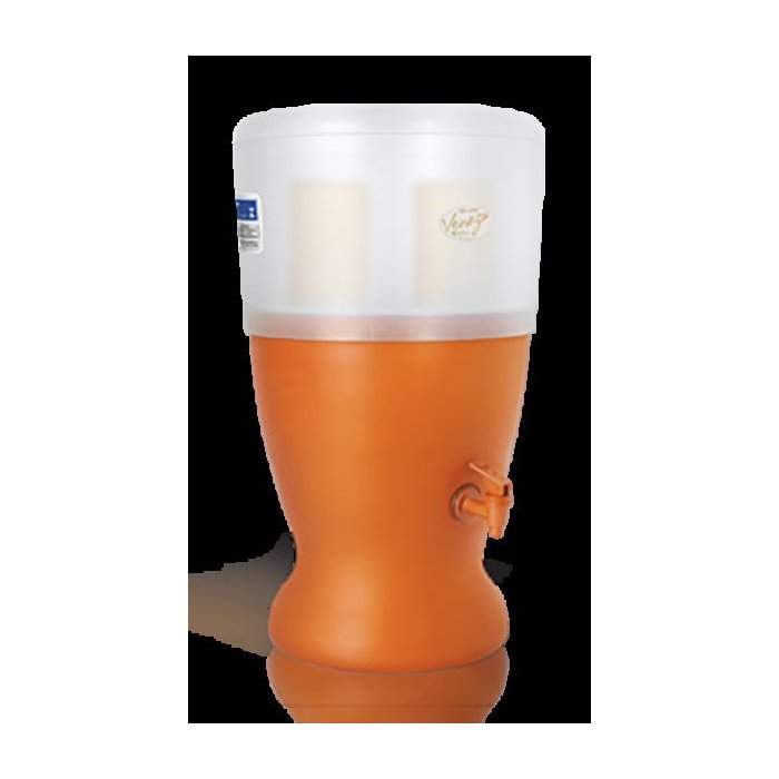 O filtro Veneza tem um design moderno e sóbrio que combina um recipiente plástico resistente na parte superior com a tradicional base de argila, que conserva a água fresca e natural.