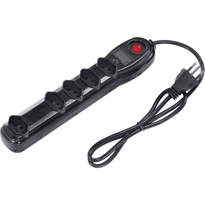 Filtro de Linha 5 Tomadas com Fusível e Chave Cabo Pp 3x0,75 0,75m Fl5t Pacote Plástico Preto