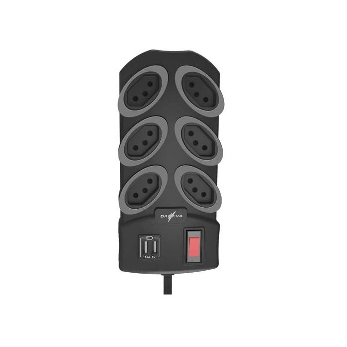 Filtro de linha Circuit Breaker 6 tomadas 2P T 10A 250V com usb DN1797 Daneva