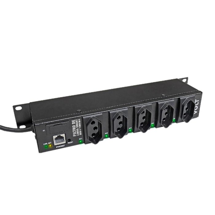 Descrição: O novo Filtro de Linha Smart Web, é a solução Volt que possibilita inúmeras aplicações, trata-se de um produto inteligente, de fácil configuração e instalação. Conta com o recurso de Timer, podendo programar hora e os dias da semana que uma determinada tomada irá ligar ou desligar. Esta configuração pode ser feita em todas as tomadas separadamente. Para seu acesso e manuseio, conta com um aplicativo VOLT, onde pode ser feita todas as configurações e controle. Possui também uma Interface Web para acesso. Sua configuração padrão de rede é via DHCP, que simplifica a localização do dispositivo na rede para configuração. Seu cenário de aplicação é imenso, podendo ser utilizado em diversas locais e seguimentos. Características Gerais: Interface Web para monitoramento; Configuração rápida e fácil; Discovery para localizar equipamento na rede; DHCP para facilitar configuração; Acesso via smartphone por aplicativo SMART SMI VOLT; Pode ser configurado totalmente pelo aplicativo Possibilidade de nomear todas as tomadas para controle e identificação; Relógio para fornecimento de hora; Agendamento para ligar/desligar as tomadas por hora e dias da semana; Protocolo SNMP para monitoração; WatchDog para monitoramento; Intervalo de varredura ajustável de 1 a 60 minutos; Reset de portas automático em caso de não resposta ao ping; Limite de amperagem total de 10 A para todos os modelos; Trabalha em 127/220Vac. Informações Técnicas CARACTERÍSTICAS TÉCNICAS Modelo: 5 Tomadas Entrada: 127/220Vac Saída: A mesma tensão da entrada Corrente Máximo: 10 A http://volt.ind.br/datasheets/2020.01.005.02-01.pdf