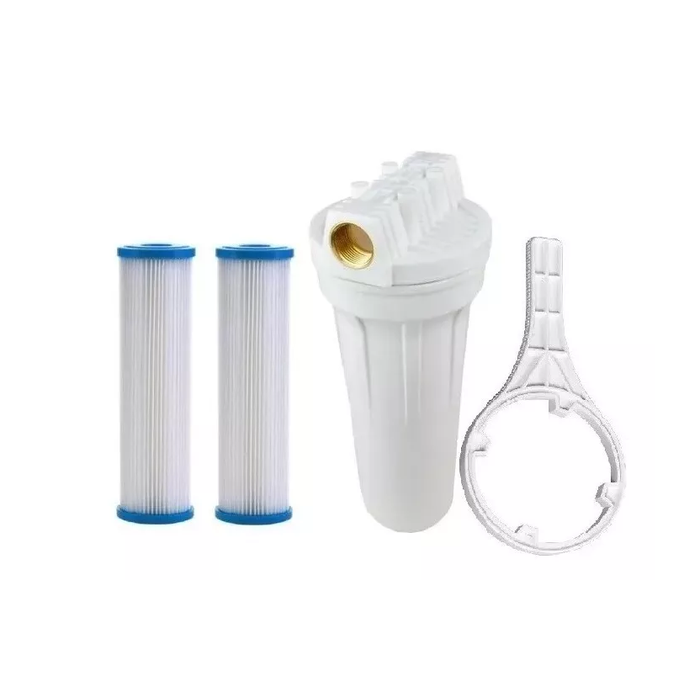 O Filtro de Entrada Com Refil Plissado Rosca 3/4" Metalica, possui vazão de 1800 l/h, foi projetado para reter sedimentos e partículas suspensas na água que viajam pela tubulação de abastecimento prejudicando equipamentos e máquinas.