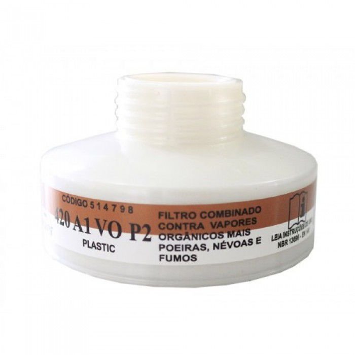 Aspectos Gerais: Filtro combinado A1P2 utilizado em conjunto com a Máscara Semi-Facial Air San.