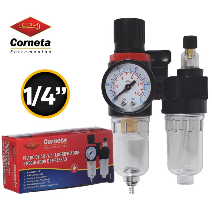 Filtro Regulador De Ar Para Compressor 1/4 Com Manometro
